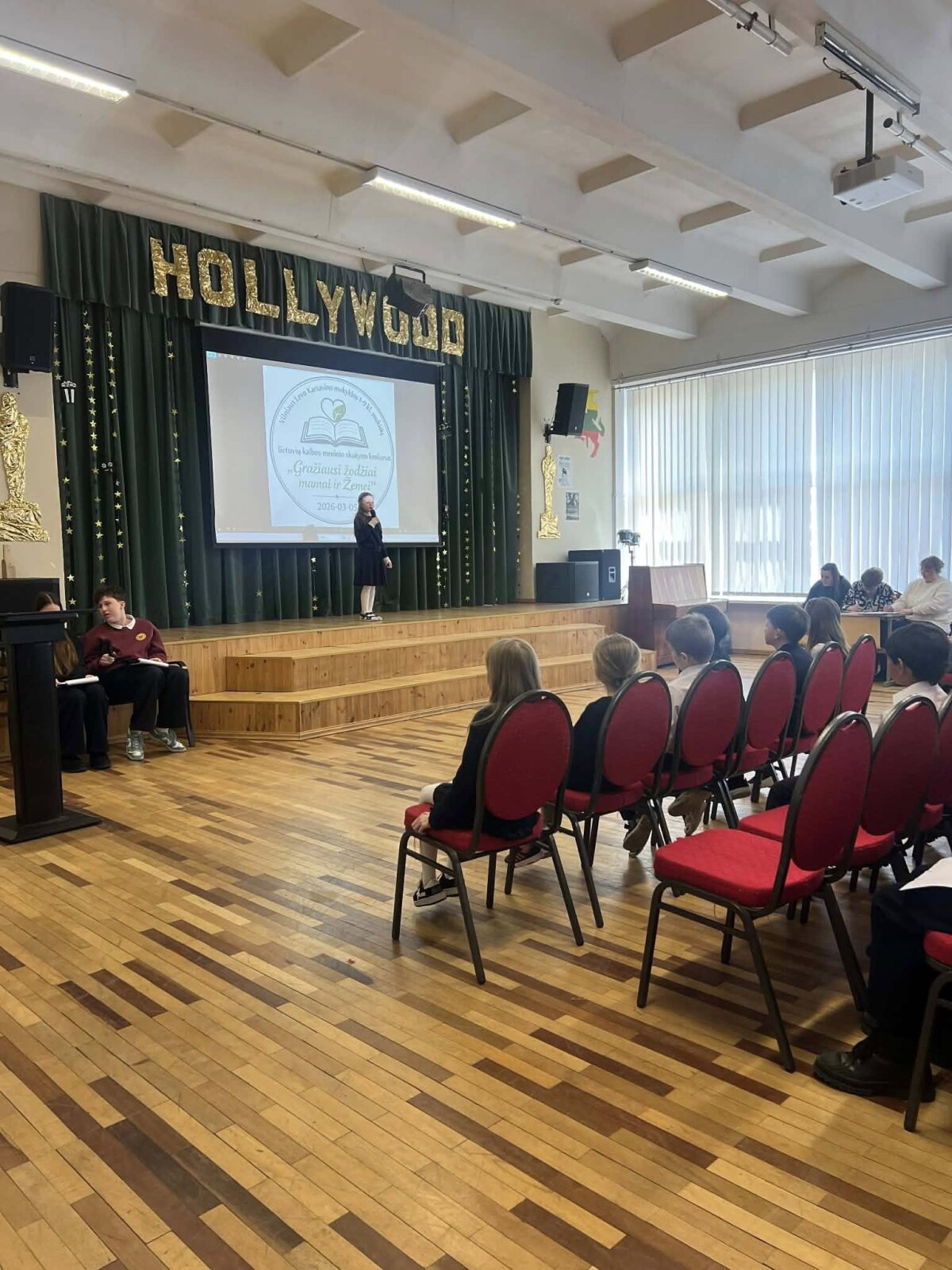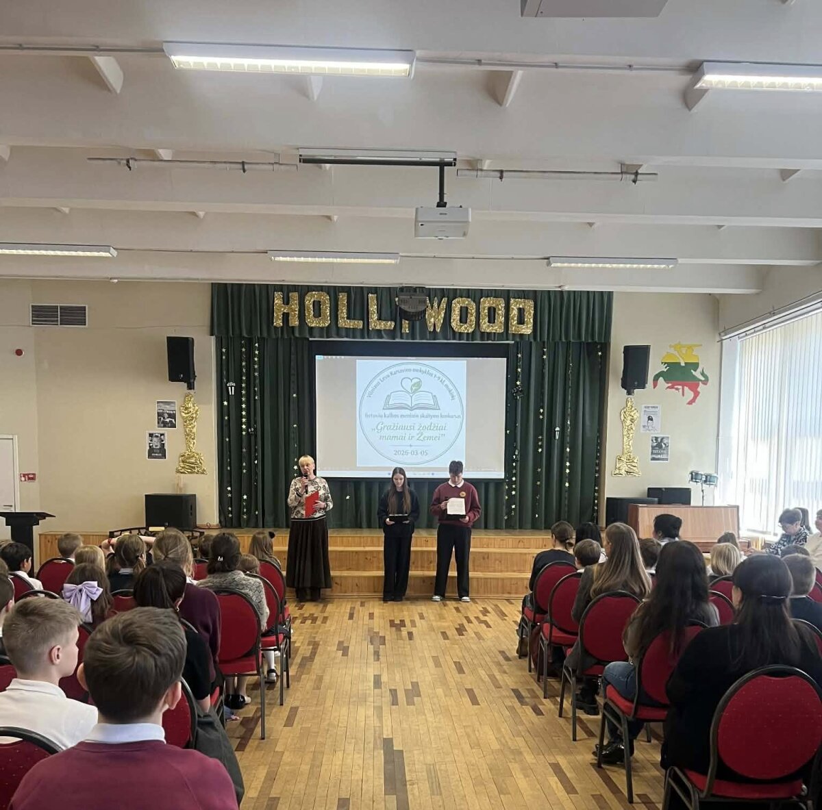 Saulėtą kovo 5 dieną mūsų mokykloje vyko lietuvių kalbos ir literatūros MG organizuotas meninio skatymo konkursas ,,Gražiausi žodžiai Mamai ir Žemei". Dalyvavo gausus būrys 1 - 9 klasių skaitovų. Renginį pradįjo muzikos mokytojas su puikia daina apie Lietuvą. Mokiniai sukūrė puikią atmosferą deklamuodami eilėračius. Komisijai buvo nelengva išrinkti nugalėtojus. Mūsų geriausieji: