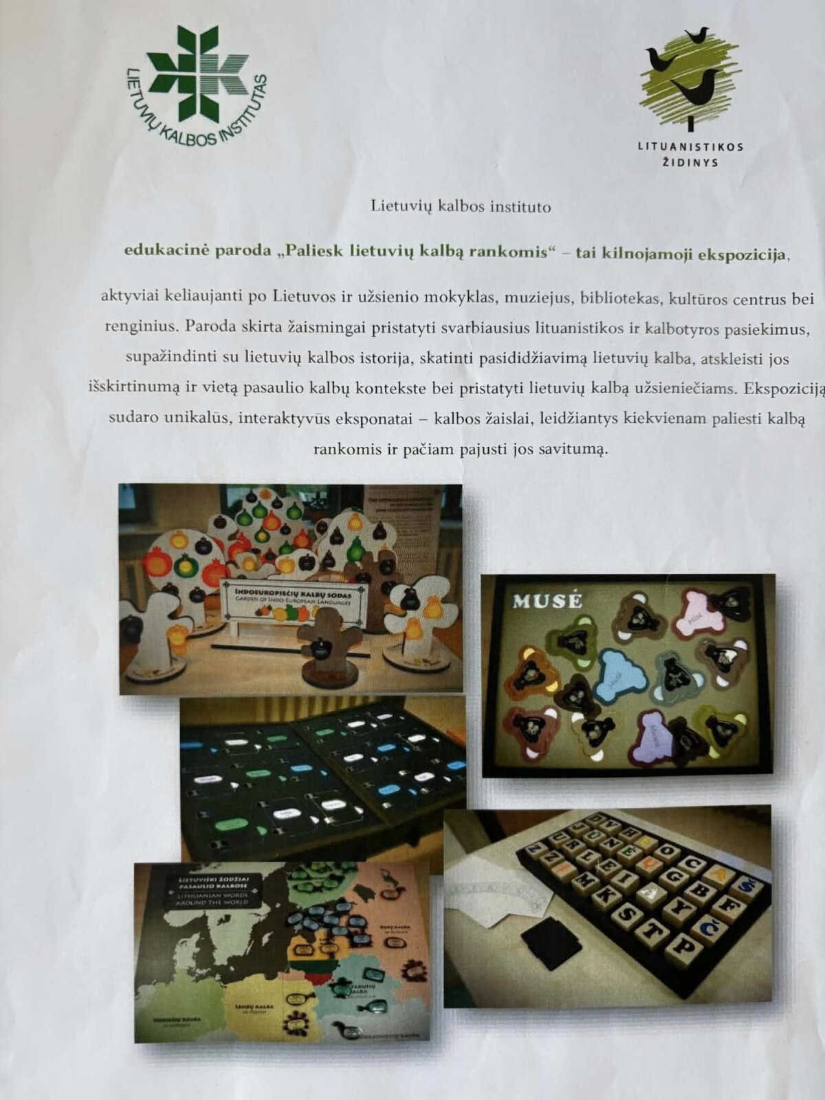 Lietuvių kalbos instituto paroda „Paliesk lietuvių kalbą rankomis“